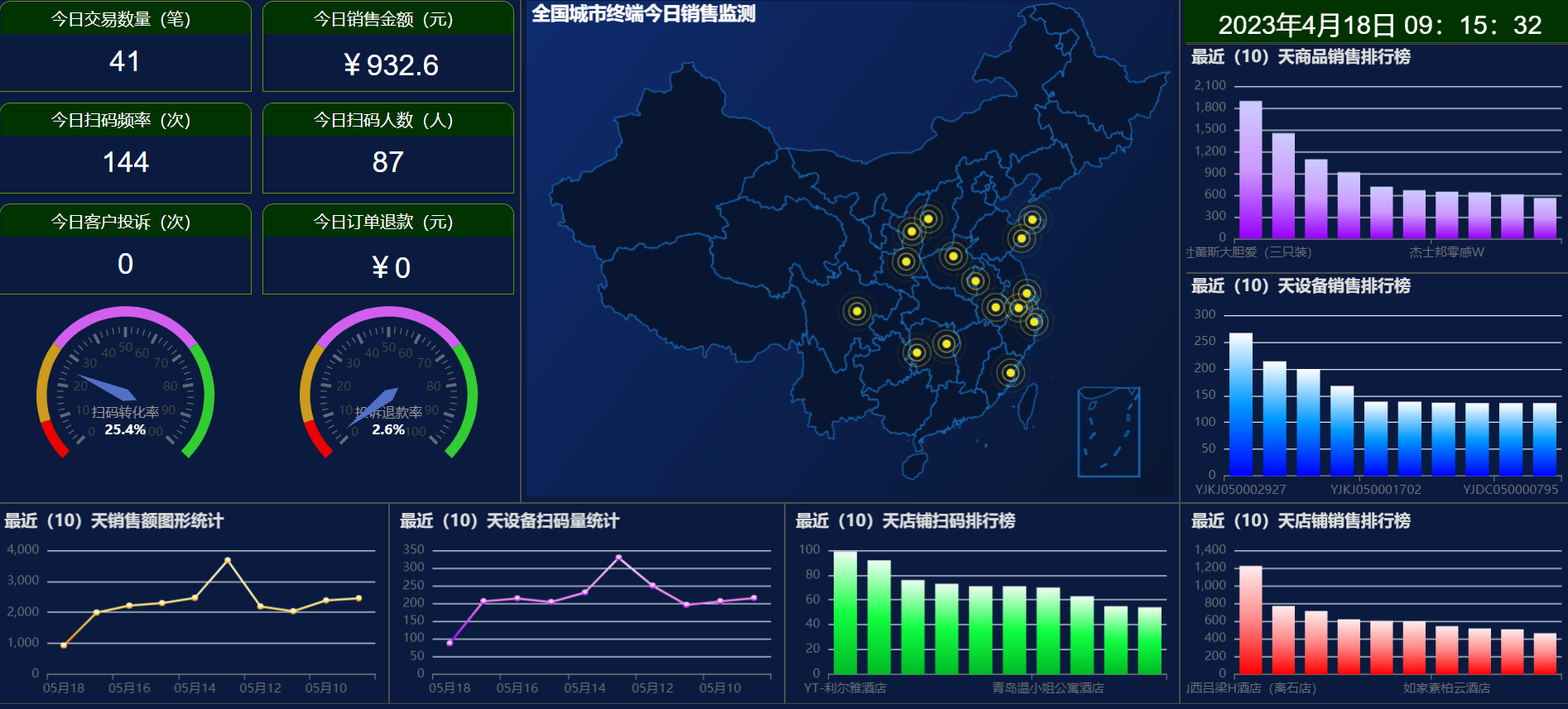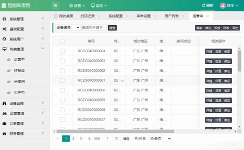 当系统设备量达到量级时,可扩展接入地图展示,查看设备全国分布情况,订单实时展示。